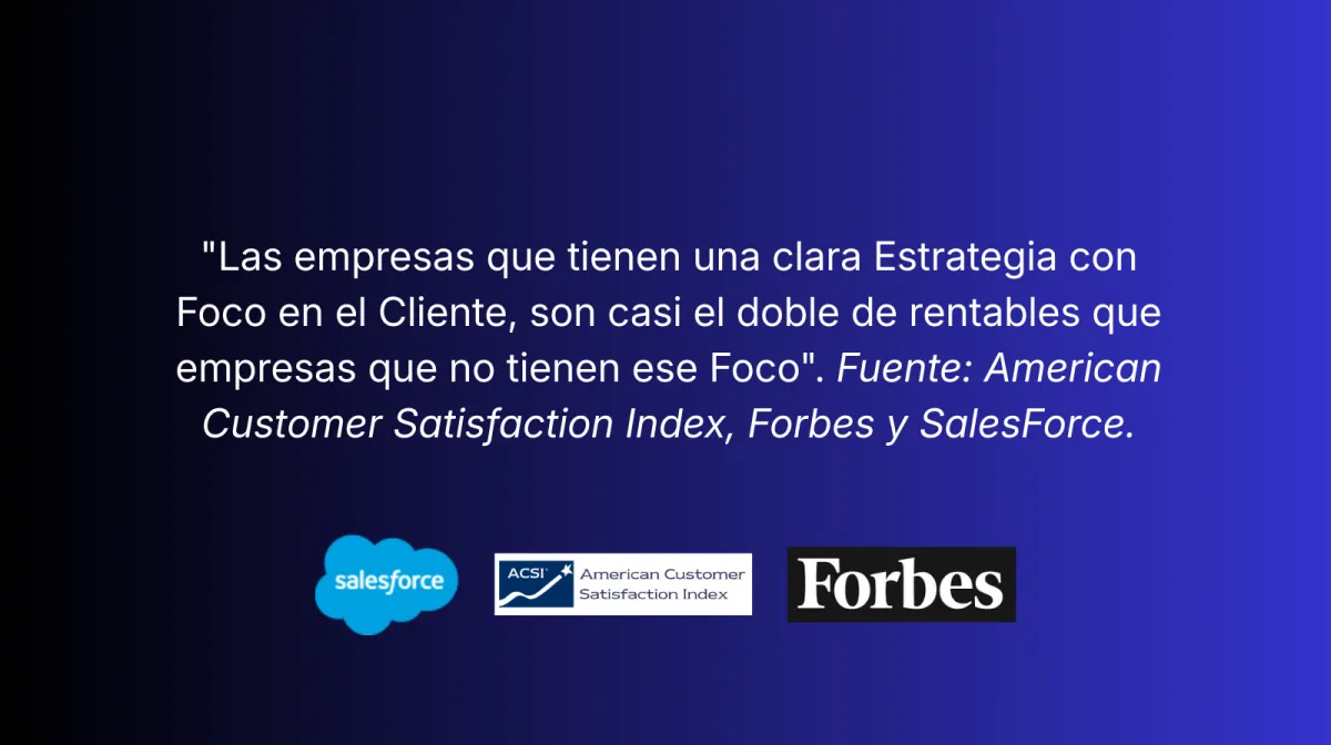 Las empresas que tienen un claro foco Customer Centricity, son el 2X de rentables que empresas que no tienen una dirección clara en Experiencia de Cliente CX. Fuente: FORBES y SalesForce.